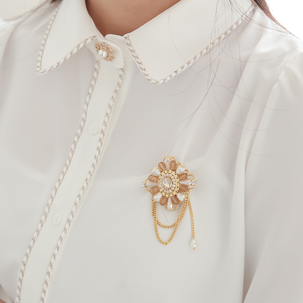 古风 리얼진주 珠饰 链条 吊坠 胸针