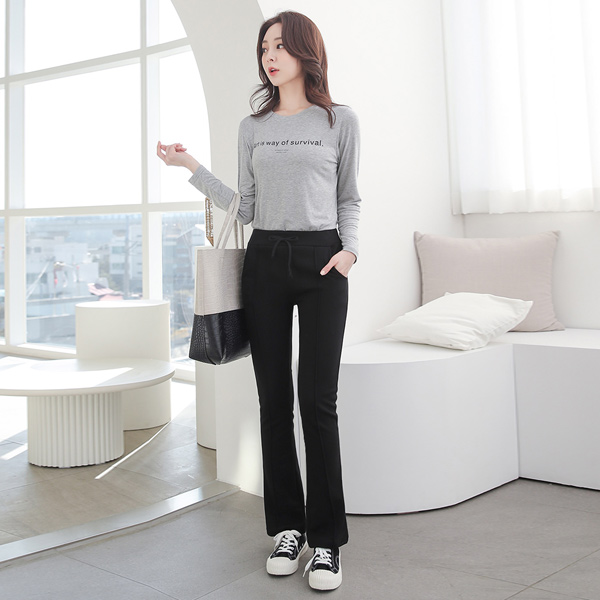 细褶 开叉线条 喇叭 运动服 裤子
