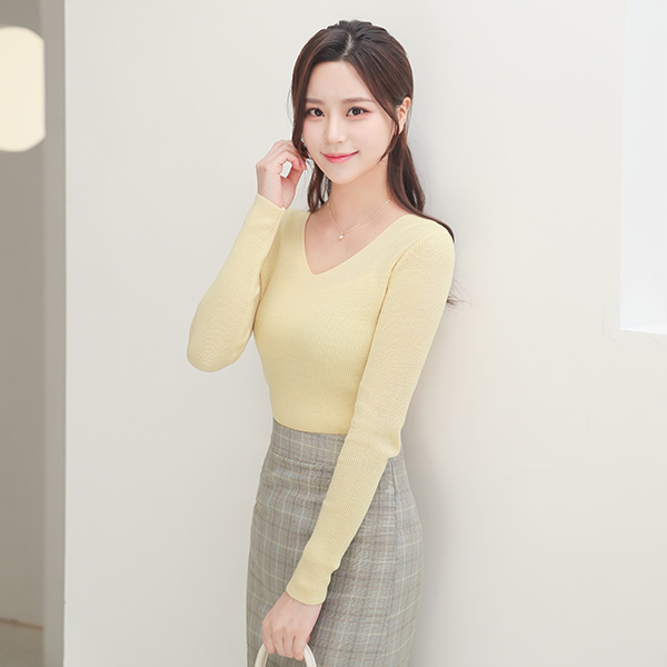 甜蜜 八字纹 Mini Slit V字领 针织衫