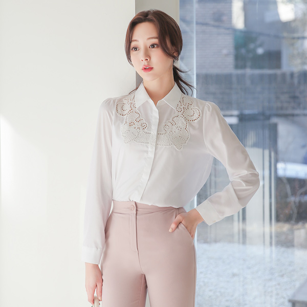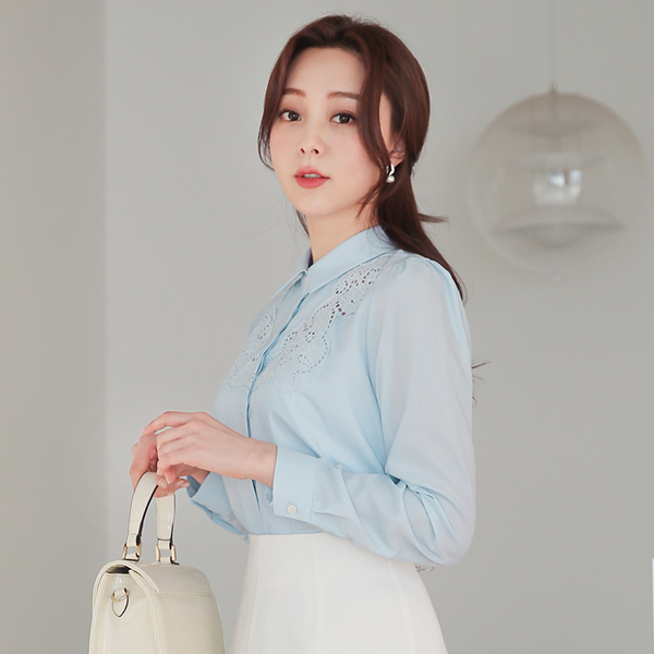 领子衬衫 印花 蕾丝 罩衫