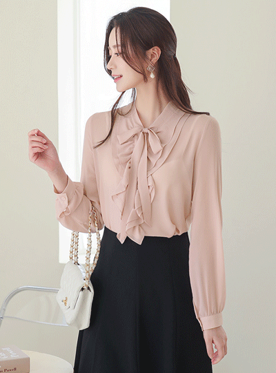 Ailey 褶裥 蝴蝶结领结 雪纺 罩衫