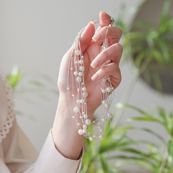 闪亮 分层 光亮 珠粉 项链