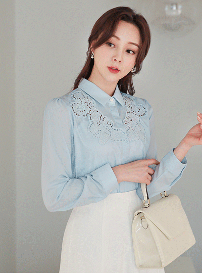 领子衬衫 印花 蕾丝 罩衫