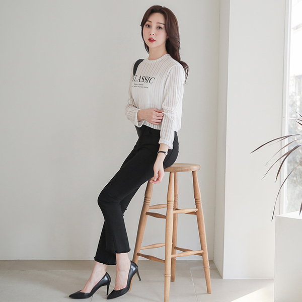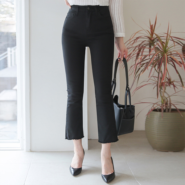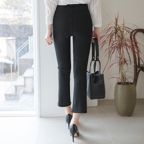 流苏 裁剪 弹力 修身 喇叭 裤子