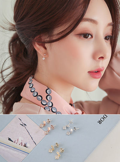 双 镶钻 三叶草 迷你 耳环