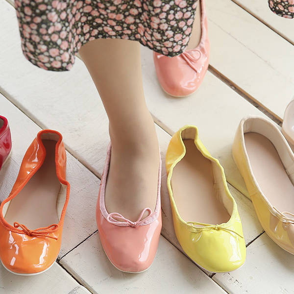 鲜明 彩色pop 果冻 蝴蝶结 平底鞋