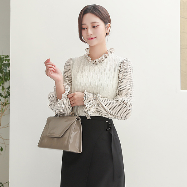 波浪卷 提花 圆点 荷叶边领 罩衫