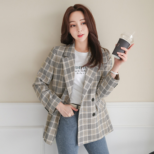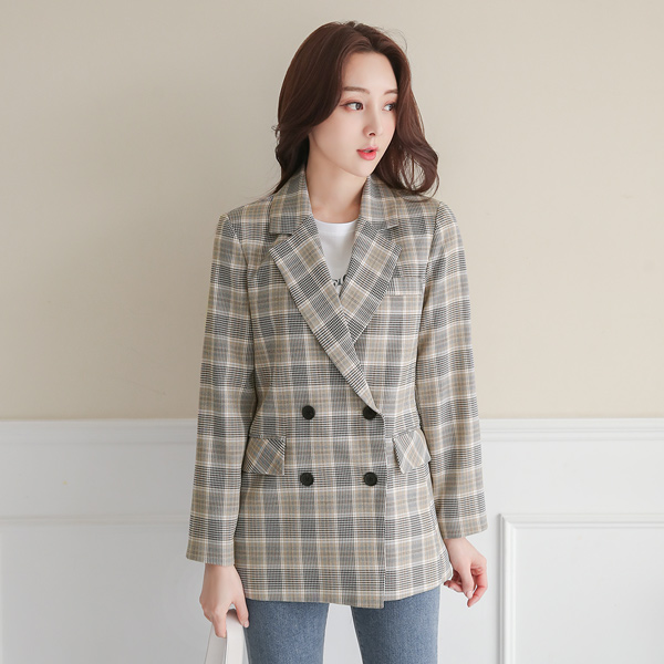 都市 格伦格子呢 双排扣 修身 夹克