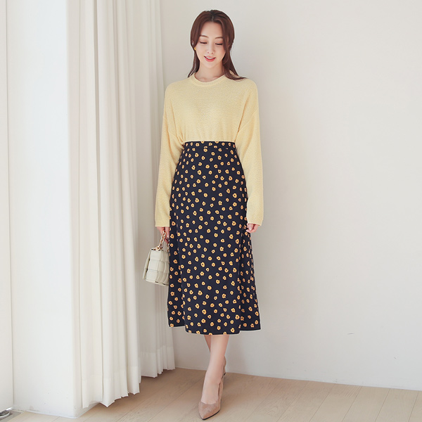 花纹 丝滑 A字型 后侧松紧带 裙子