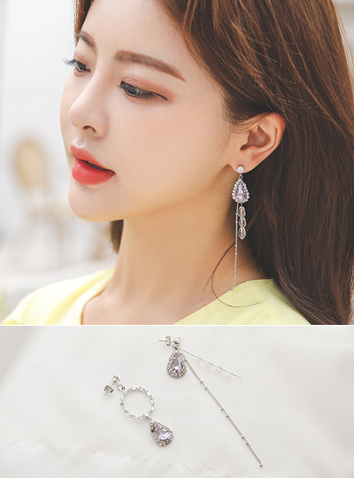 紫色镶钻不规则吊坠耳环