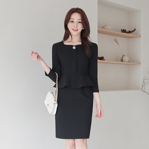 花纹 珠宝首饰 心形领 荷叶边 连衣裙