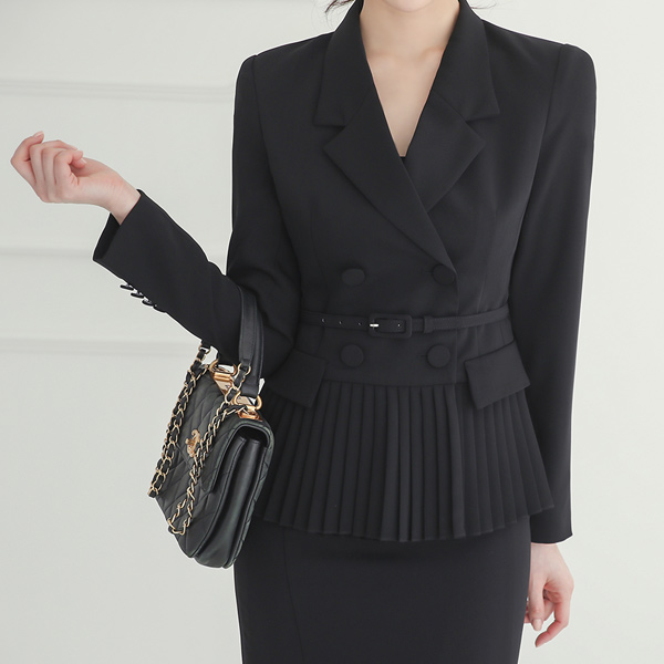 豪华 双排扣 修身 褶边 荷叶边 夹克