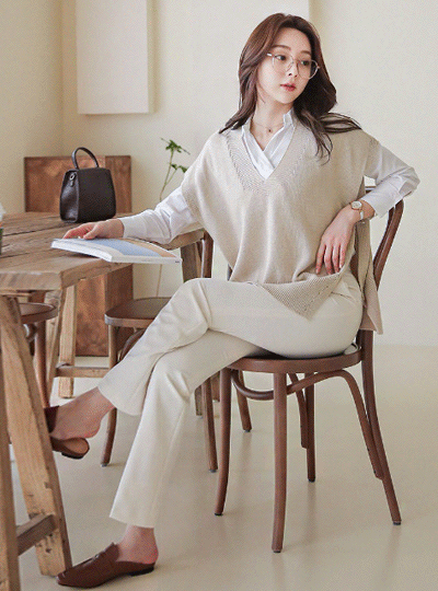 侧纽 开叉 宽松 八字纹 针织衫 马甲