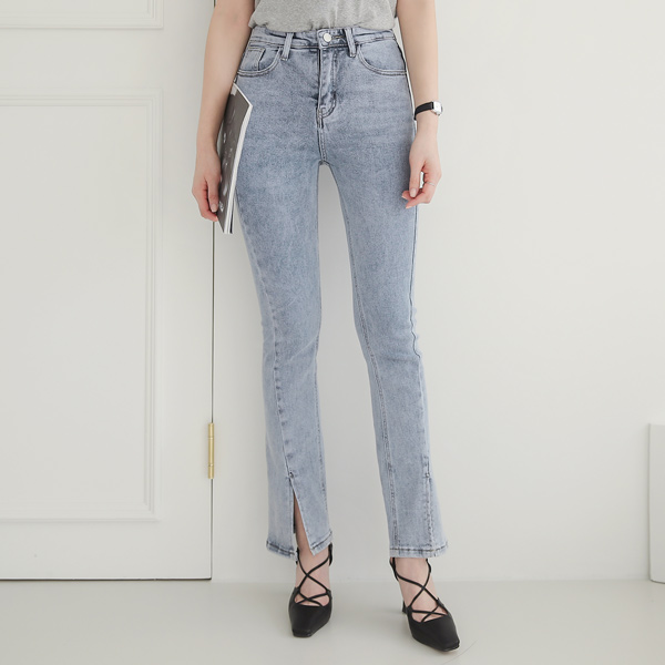 独特 石头 水洗 开衩 喇叭 牛仔色