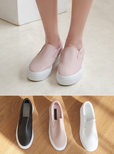 春季 真 人造皮夹 松紧帆布鞋