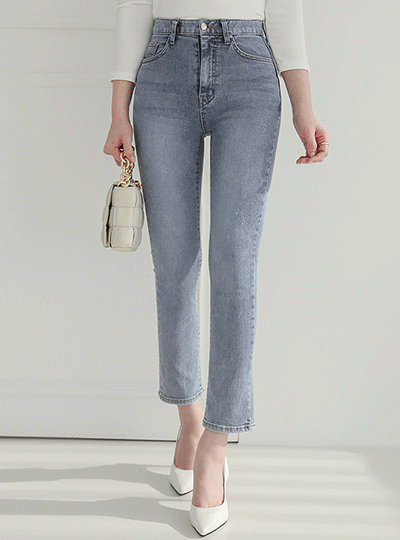 浅色 水洗 修身 直筒 牛仔裤