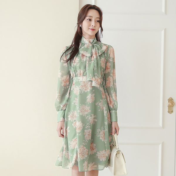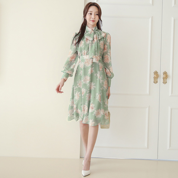玫瑰色 蝴蝶结领结 雪纺 喇叭 连衣裙 Ⅱ