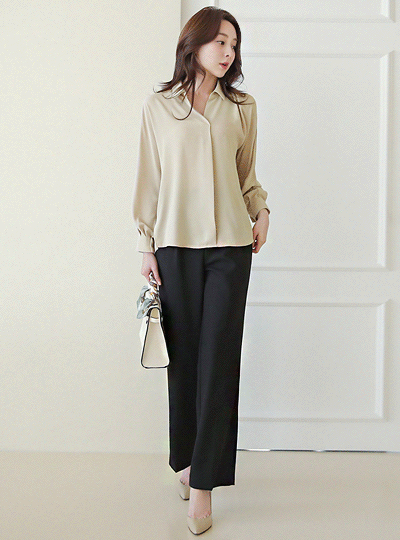 半开 单个 领子衬衫 罩衫