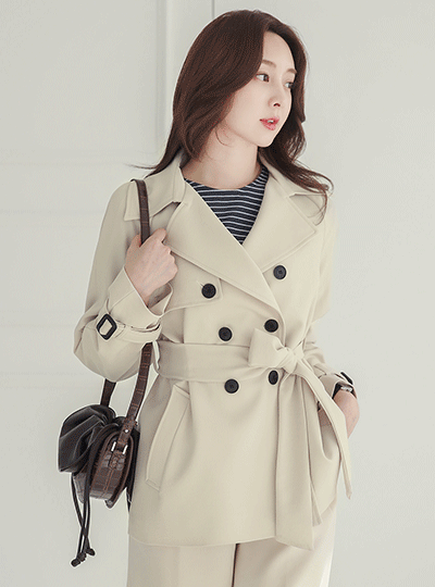基本 插肩袖 弹力 短上衣 双排扣雨衣