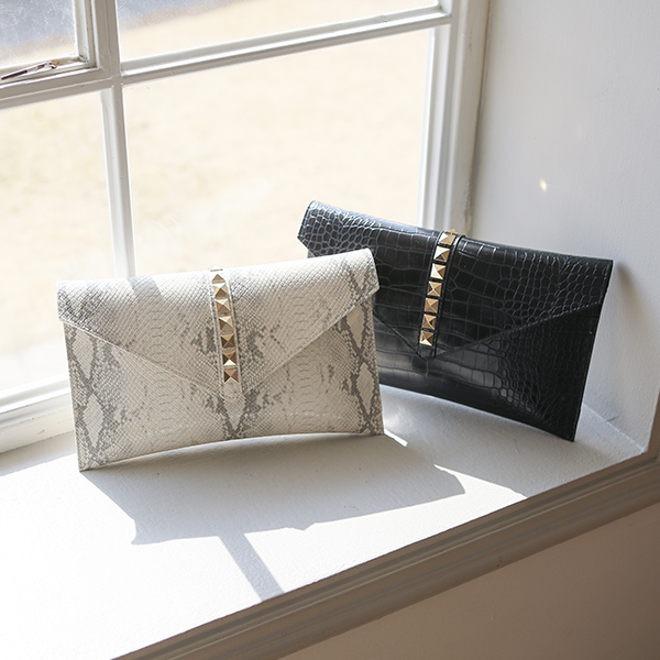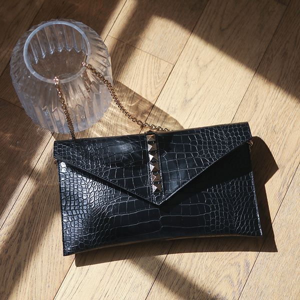Gold 柳钉装饰 蛇皮纹 翻盖风格 手拿包