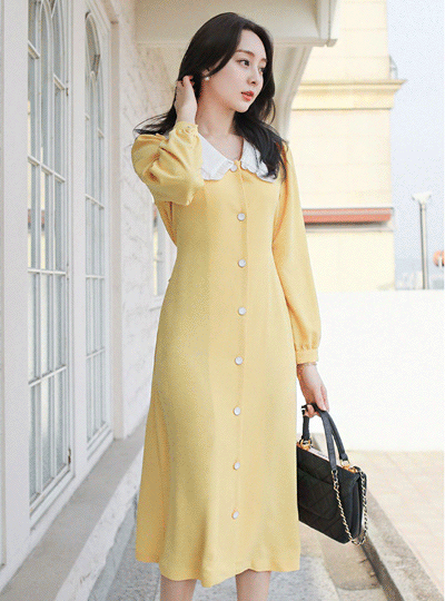 荷叶 大衣领 后面蝴蝶结 A字型 连衣裙