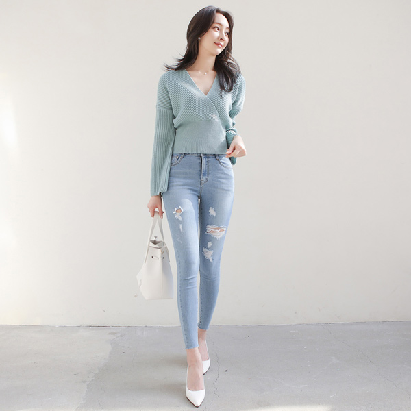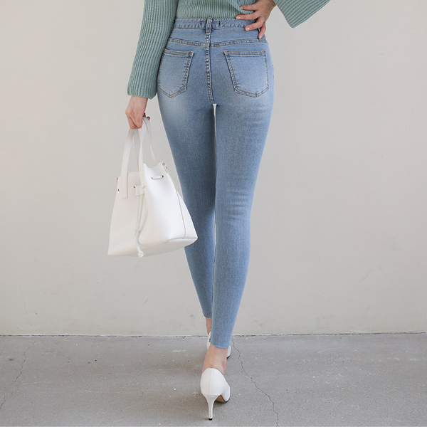 Destroyed 水洗 弹力 紧身牛仔裤