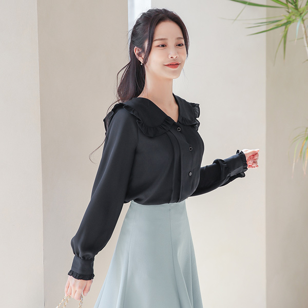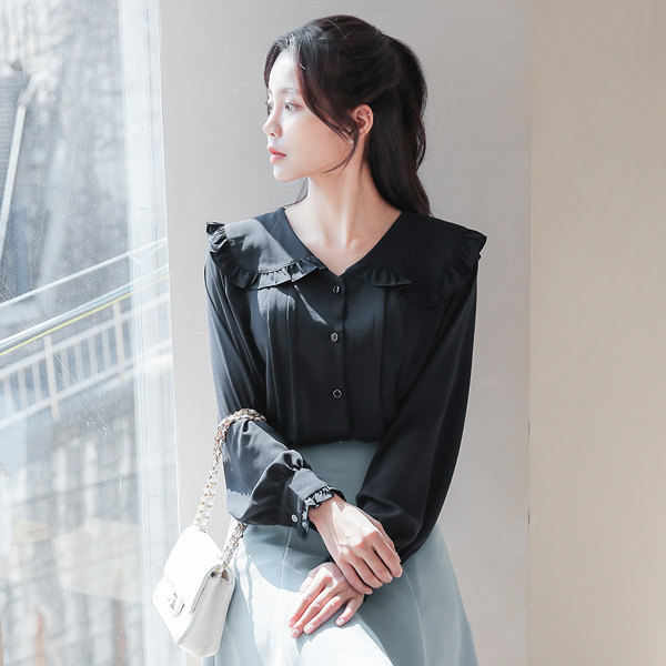荷叶 水手 领子 细褶 罩衫