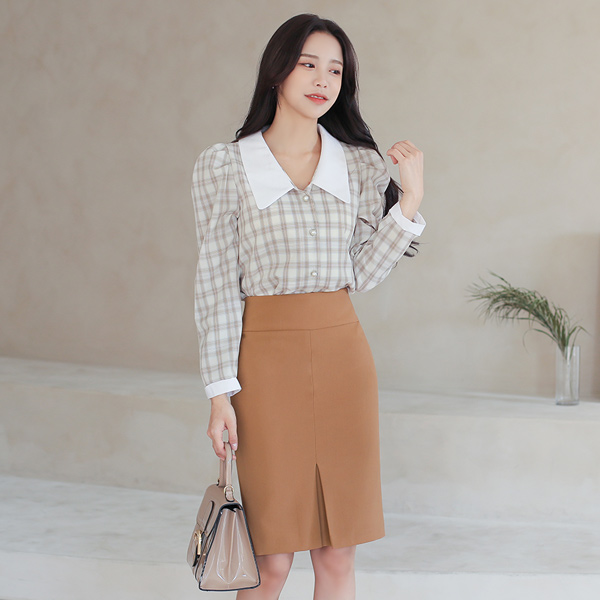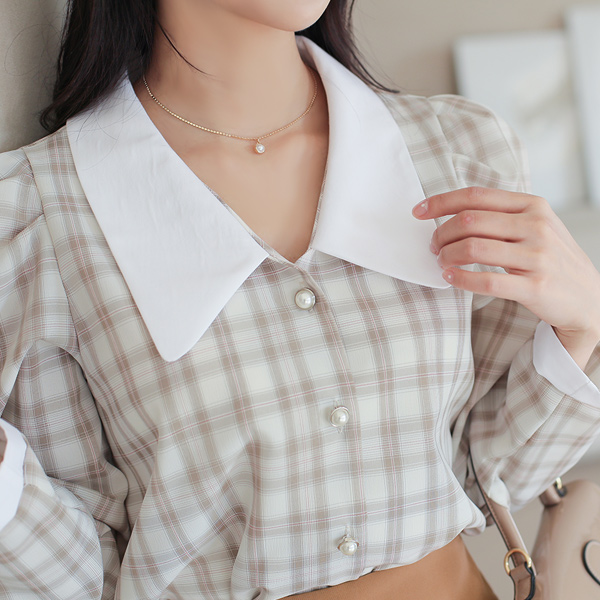 长方格 格子 宽松 平领 罩衫