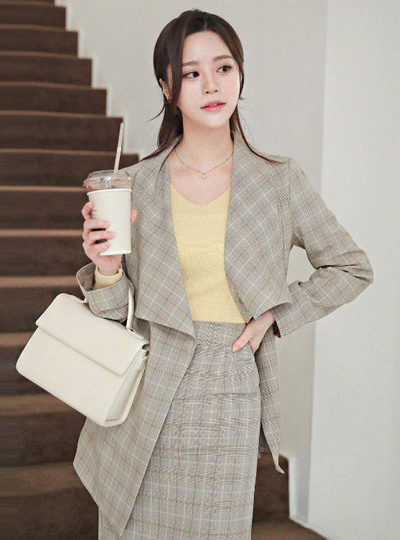 春季 柔色 格子 束带 翼领 숄자켓