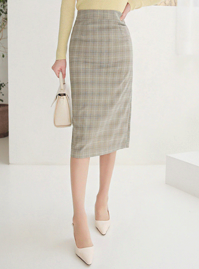 春季 柔色 格子 H字型 中长款裙