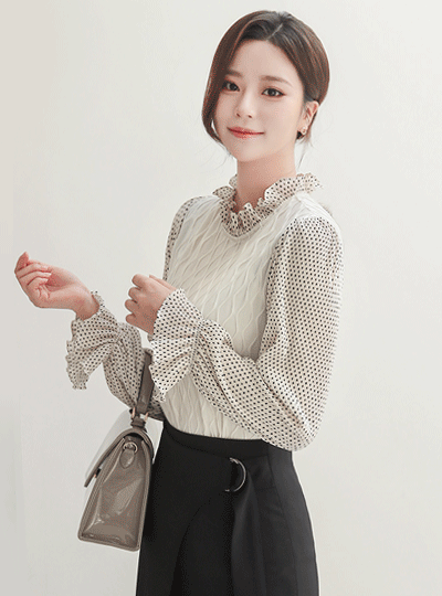 波浪卷 提花 圆点 荷叶边领 罩衫