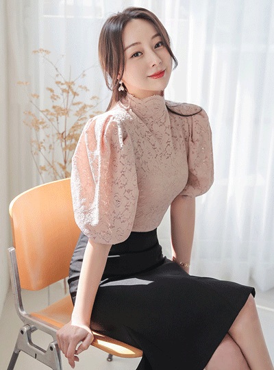曲线 灯笼 袖子 高龄 蕾丝 罩衫