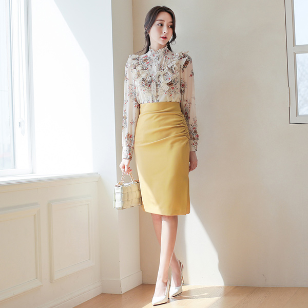 阳光明媚 花纹 去皱纹 荷叶边领 罩衫