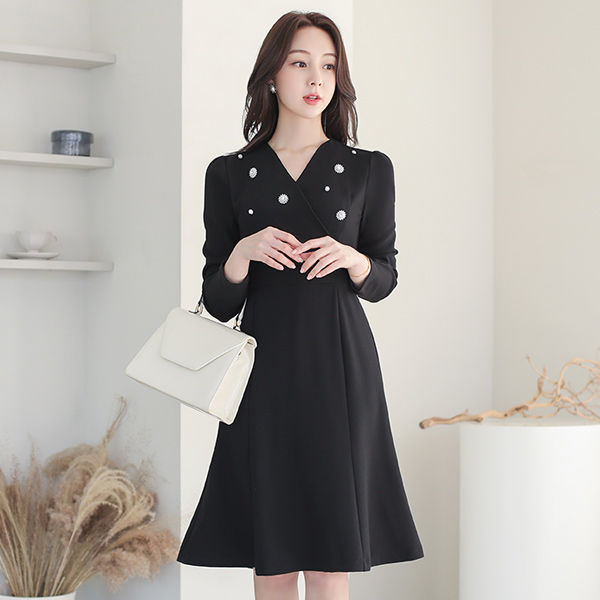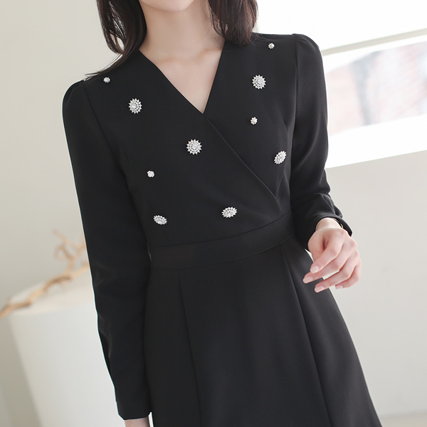 Black 플라워라인 淡水珍珠 耳环