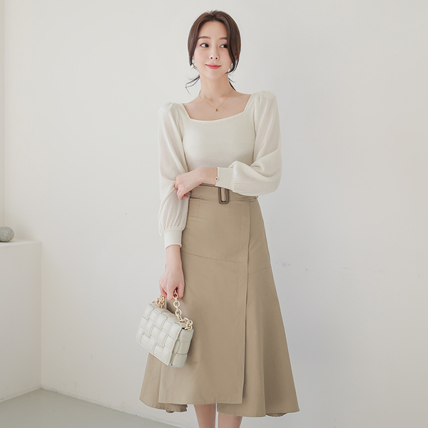方领 肩垫 Slav 针织衫 T恤衫