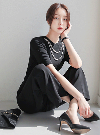 粗 珍珠&链条 项链 T恤衫