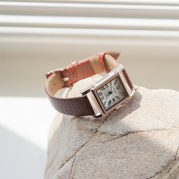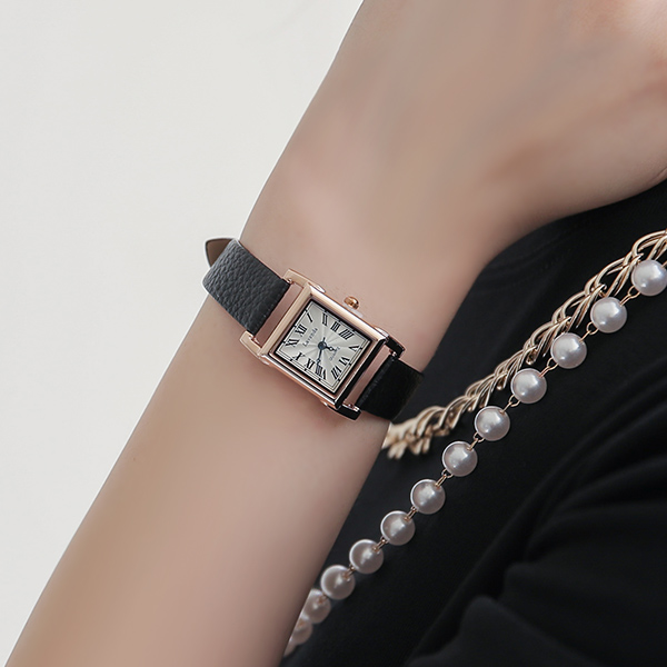 Analog 方形 다이얼 牛皮 手表