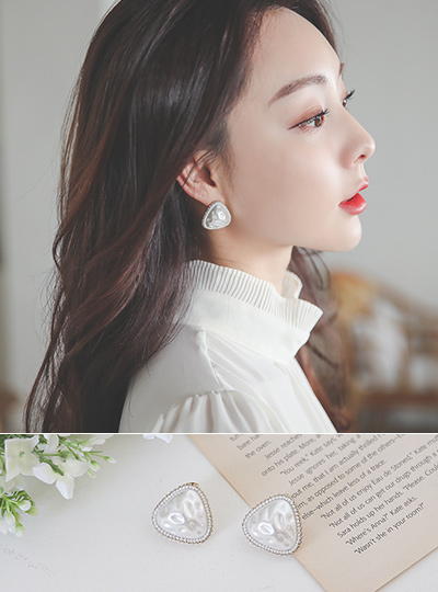 三角形 镶钻 大珍珠 耳环