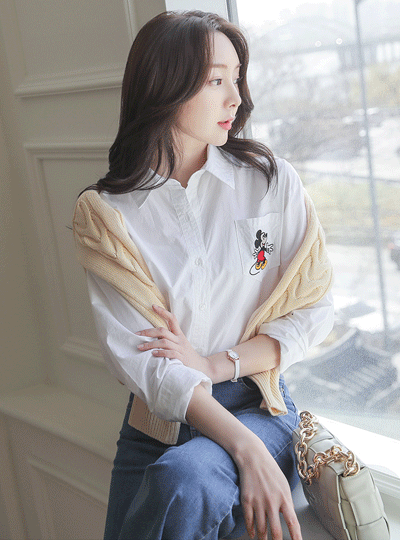 米奇 缂丝 口袋 棉 长衬衫