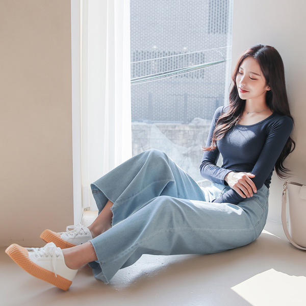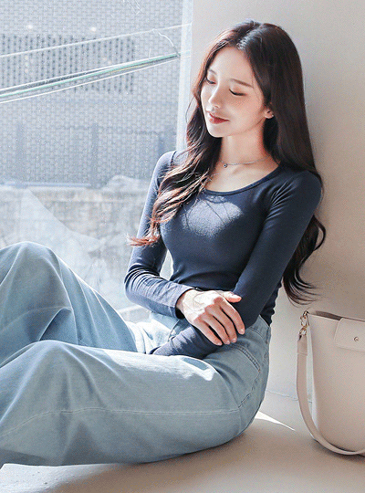 柔丝 天丝 条绒 修身 方领 T恤衫