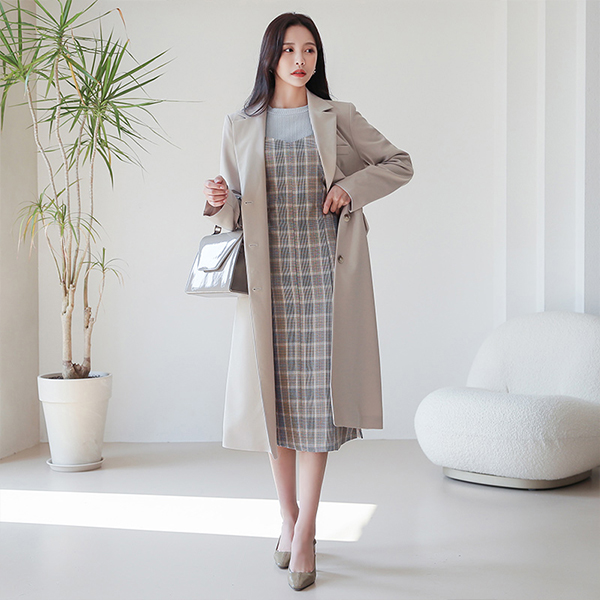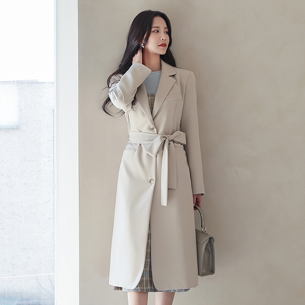 摩登 单个 束带 修身 弹力 长款夹克