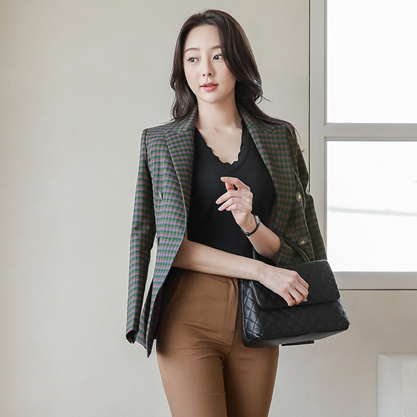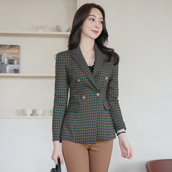 各色各样 格子 绷带 配色 双排扣 夹克
