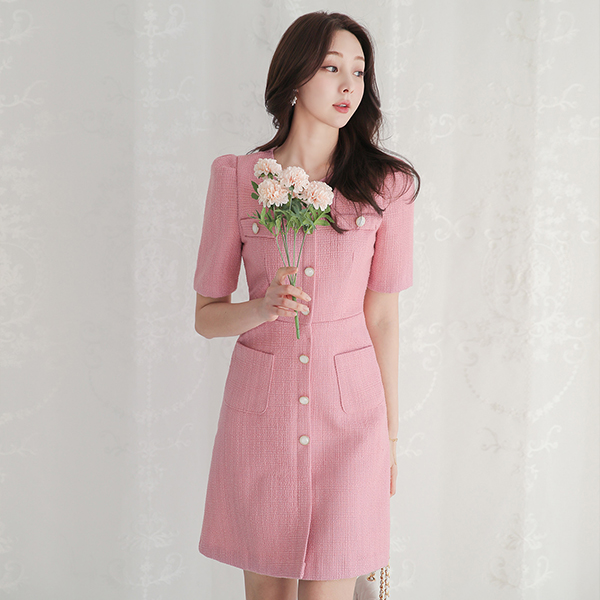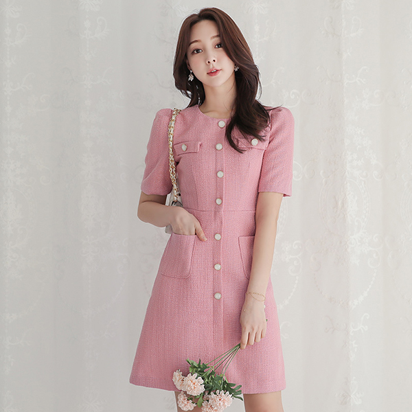 双口袋 A字型 粗呢 连衣裙