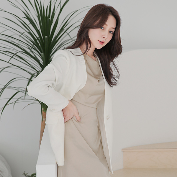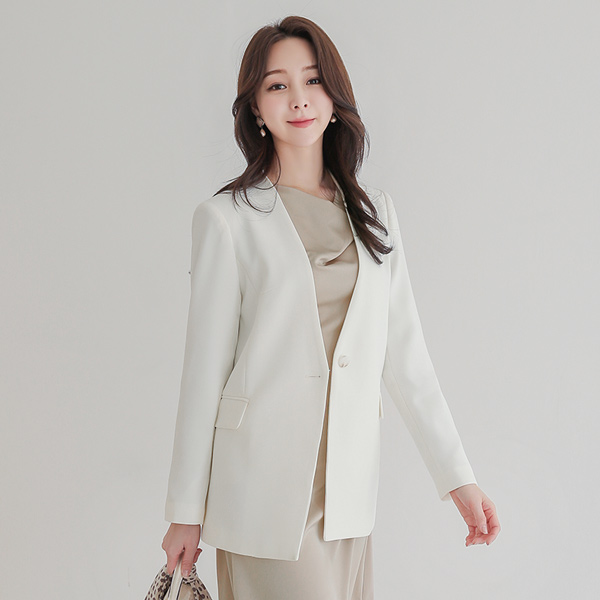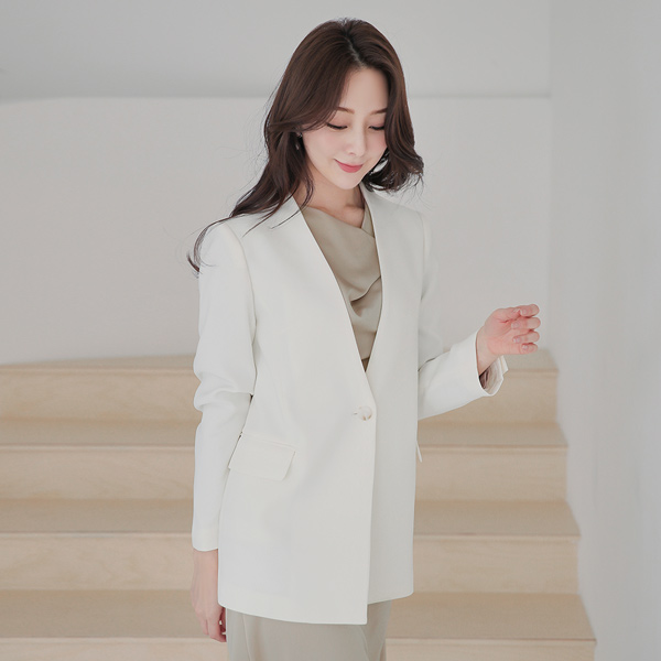 宽松款 无领 单扣 夹克