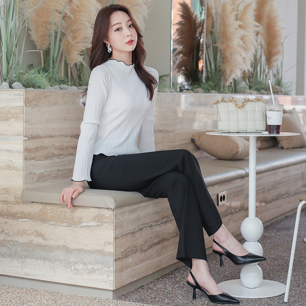 修身 高腰 弹力 一字型 长款 宽松长裤
