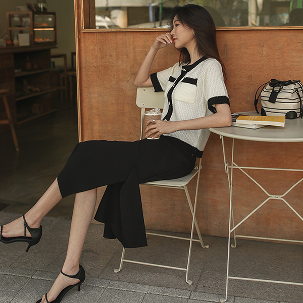细密 弹力 开叉 摩登 长款 裙子