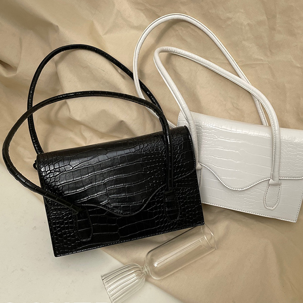 鳄鱼纹 双层 翻盖风格 方形 肩包