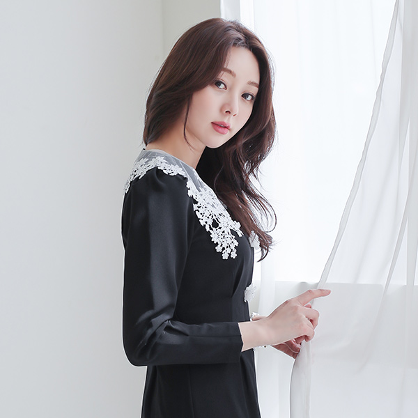 Blanc 蕾丝 披肩 花朵纽扣 连衣裙