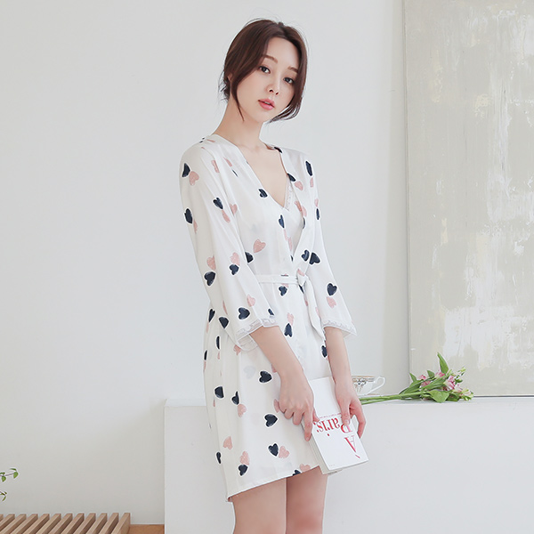 爱心 缎子 睡裙 白大褂 SET