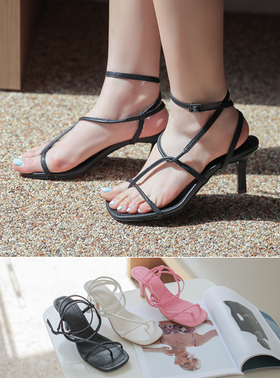 方形 人字拖 皮条/束带 高跟凉鞋